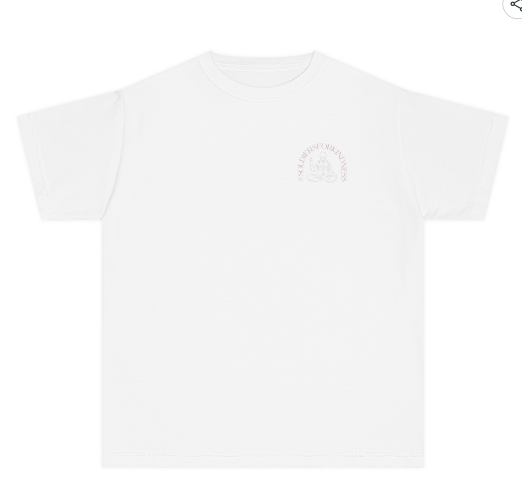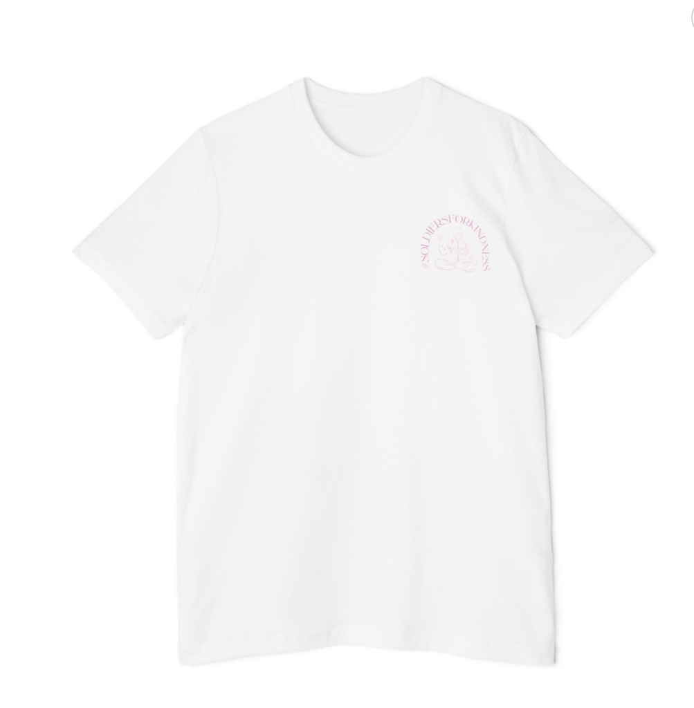 To bolster our mission of kindness, we’ve crafted the Soldiers For Kindness t-shirts in vibrant pink and soothing blue, serving as walking billboards for our message of love, kindness, and support.